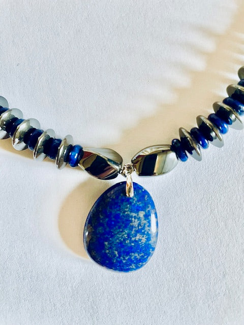 Turquoise pendant with rough cut turquoise accent beads and black Onyx spacers